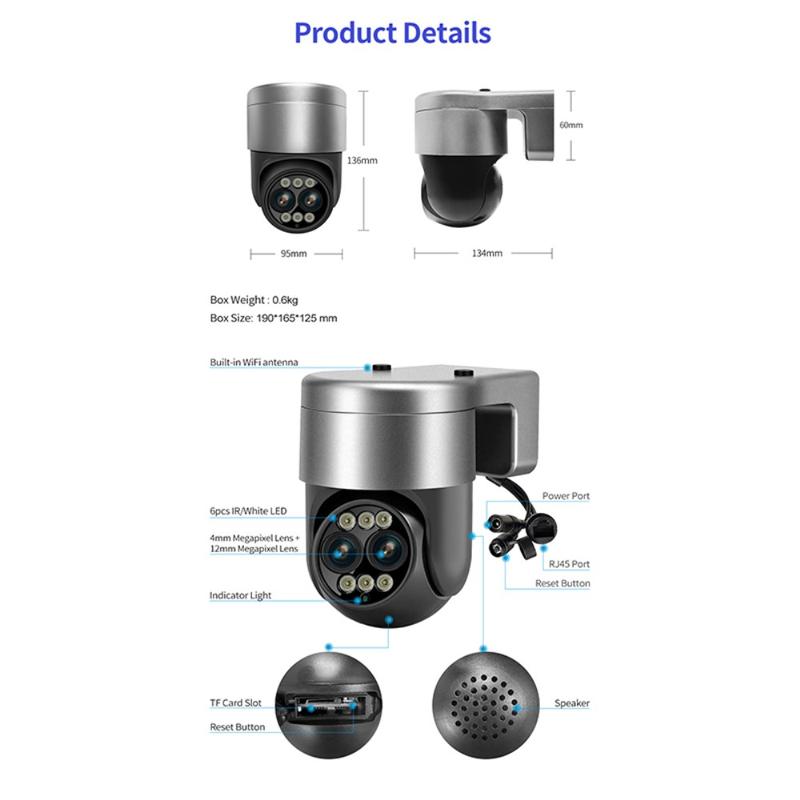 • ESCAM G03 Dual-Lens WiFi PTZ-Kamera mit 8x optischem Zoom, 4 MP + 4 MP, Farb-/IR-Nachtsicht, Zwei-Wege-Audio
