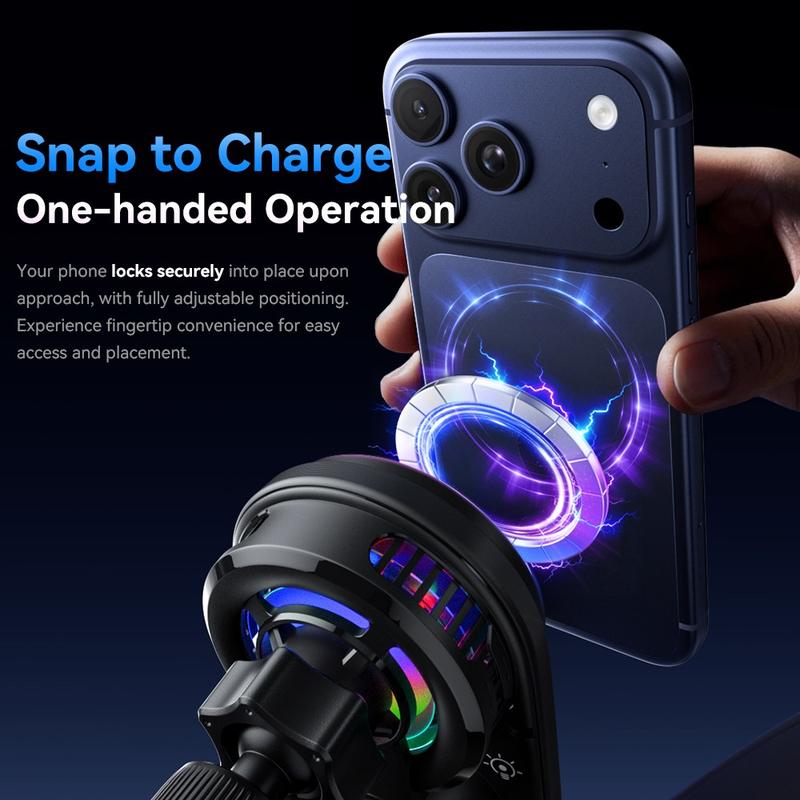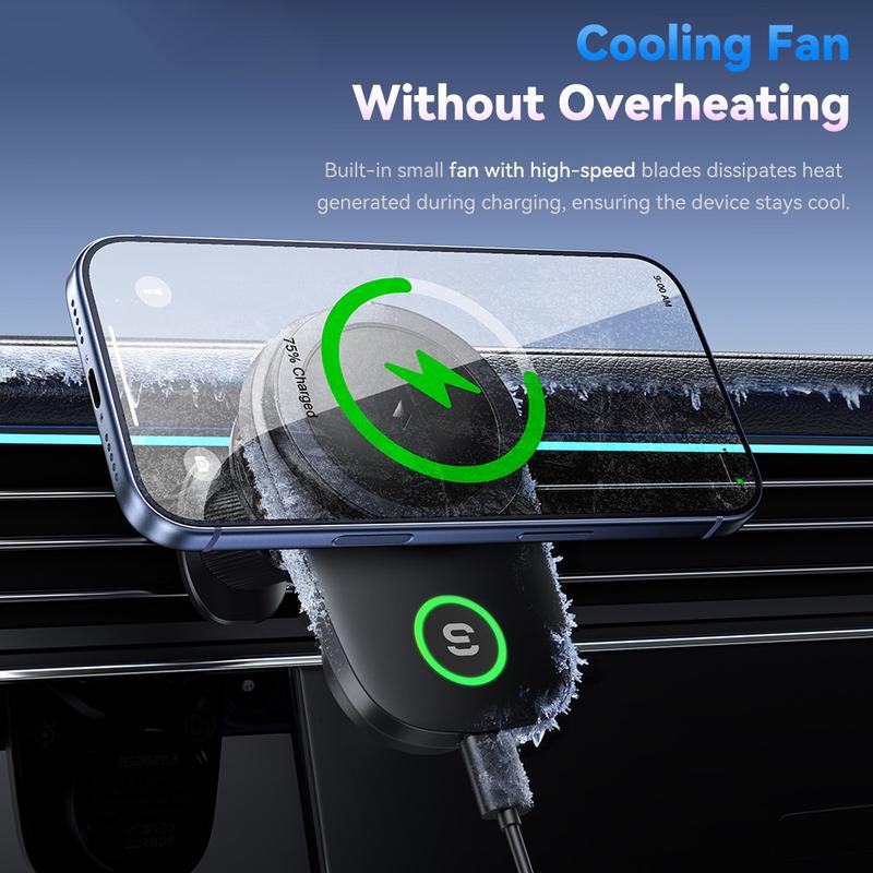 Essager 15W Magnet-Wireless-Ladegerät/Autohalterung mit Lüfter, RGB-Beleuchtung und Befestigung für die Lüftungsdüse - MagSafe-kompatibel