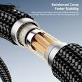 - Verstärkte geflochtene Kabel halten in der Regel länger als standardmäßige kunststoffbeschichtete Kabel, da sie widerstandsfähiger gegen Biegen und Ziehen sind.