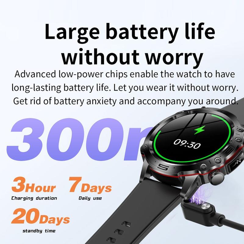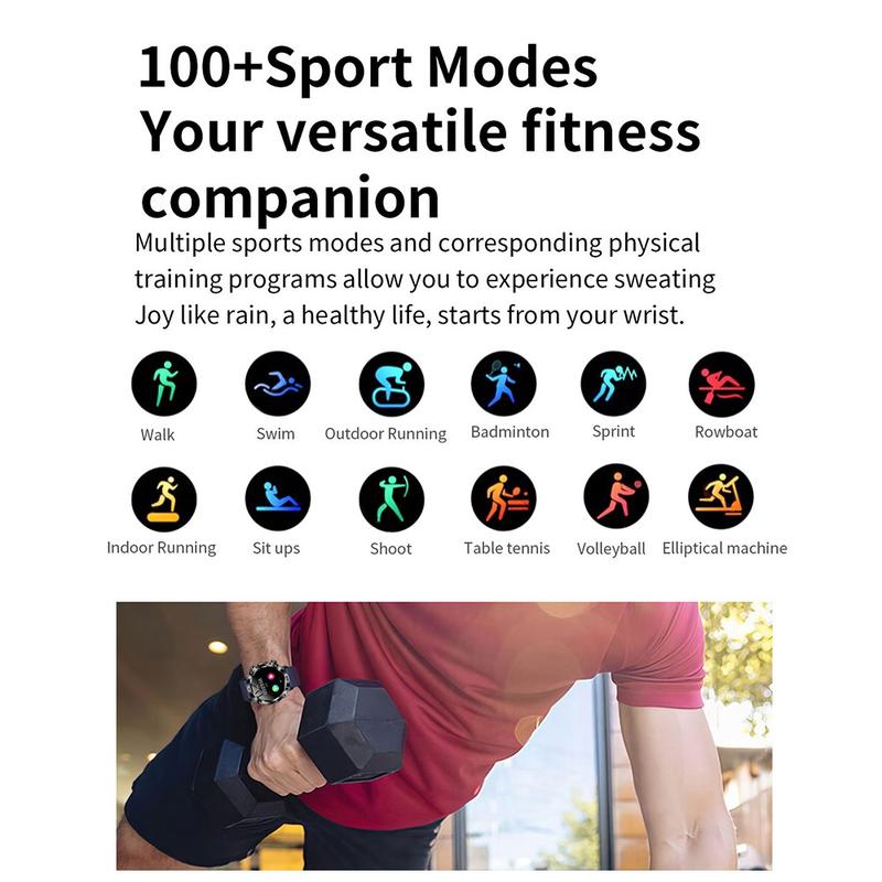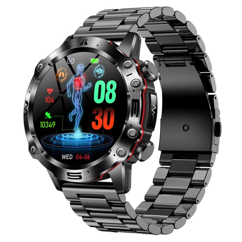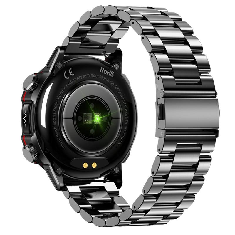 - Langlebiges Design: Mit ihrem Stahlarmband und der Wasserdichtigkeitsklasse IP68 ist diese Smartwatch so konstruiert, dass sie dem täglichen Tragen und verschiedenen Umweltbedingungen standhält.