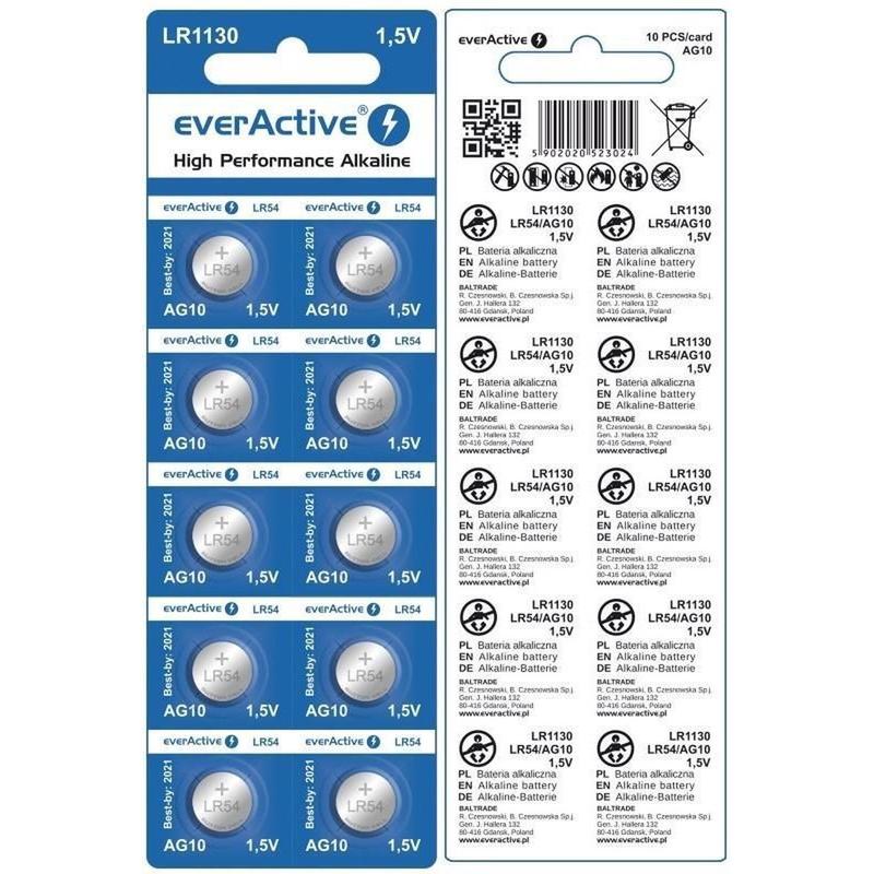 EverActive AG10 LR1130/LR54 Alkaline-Knopfzellenbatterien - 10 Stk.