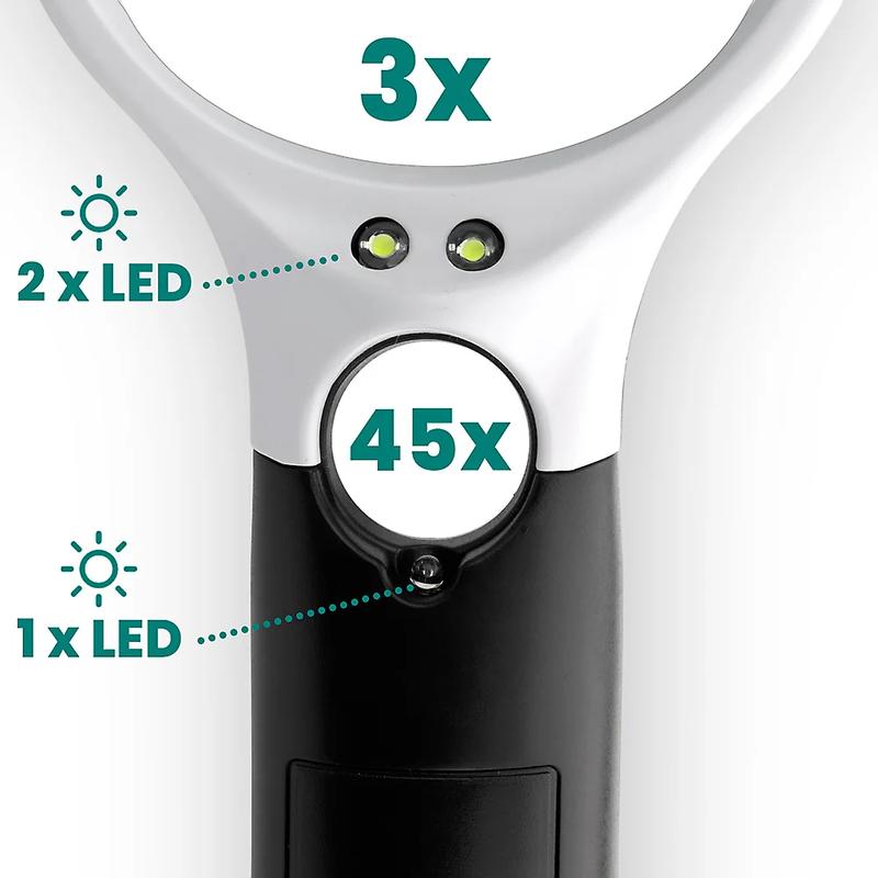 EverActive MG-01 Lupe mit LED-Hintergrundbeleuchtung - 3x große Linse und 45x Mini-Linse, 3x AAA Batteriebetrieb