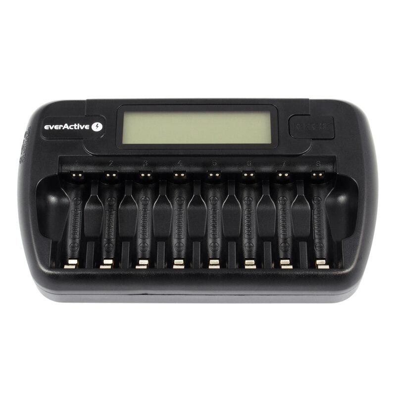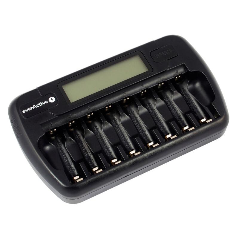EverActive NC-800 Batterieladegerät für 8x AAA/AA-Akkus - mit Autoladegerät, EU-Netzadapter