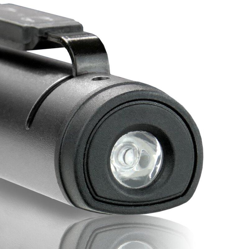 - Vier unabhängige Lichtquellen: universelles Licht mit großer Reichweite, starkes Seitenlicht mit breitem Lichtstrom, fortschrittliches UV-Licht (Wellenlänge 365nm) und Mehrzweck-Laserpointer (700nm)