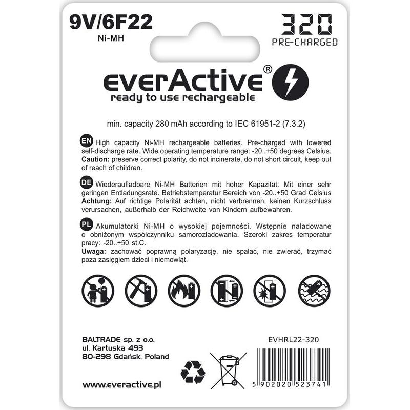 EverActive Professional Line EVHRL22-320 Ni-MH 6F22/9V Wiederaufladbare Batterie 320mAh