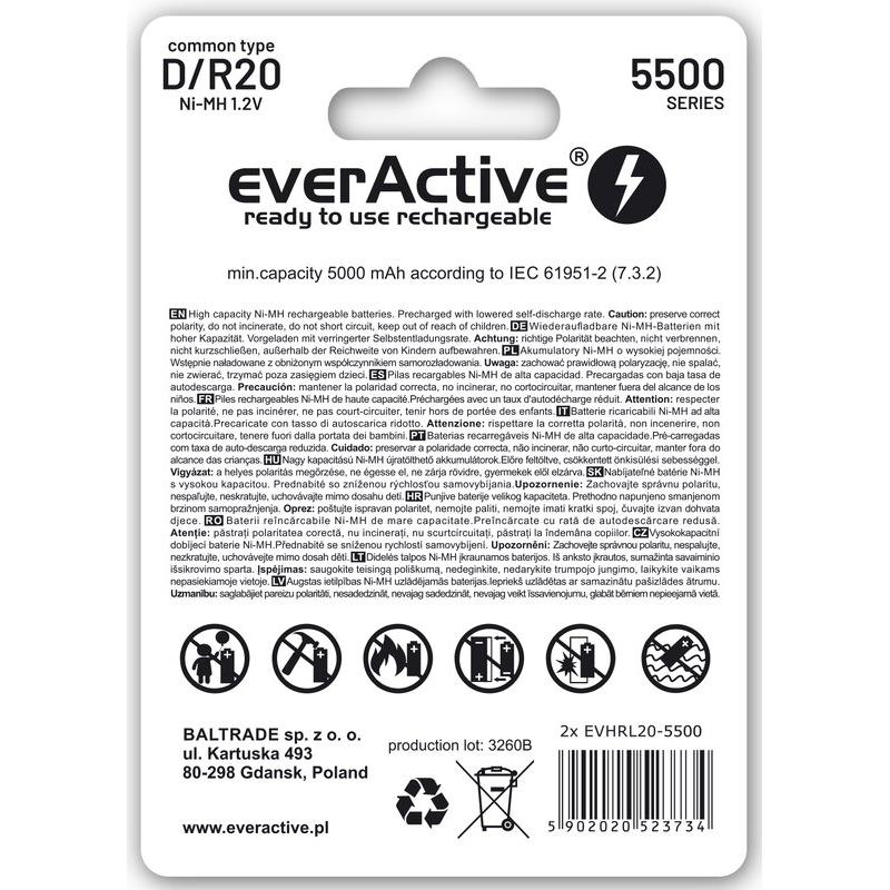 EverActive Silver Line EVHRL20-5500 Ni-MH R20/D Wiederaufladbare Batterien 5500mAh - 2 Stk.