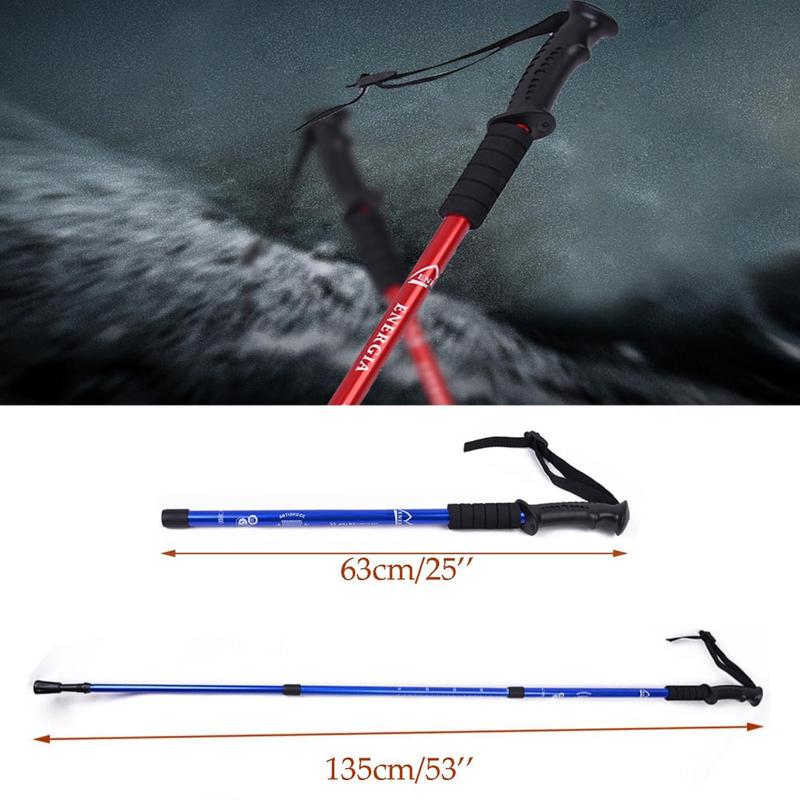 Enhance your outdoor adventures with this 135cm Extendable Hiking Stick. Made from lightweight yet sturdy aluminum alloy, it provides excellent shock absorption to reduce the impact on your knees during hikes or climbs. With an ergonomic grip for comfortable handling and adjustable length, this pole is perfect for users of all ages. The foldable design makes it easy to store and transport, offering balance and stability across various terrains.