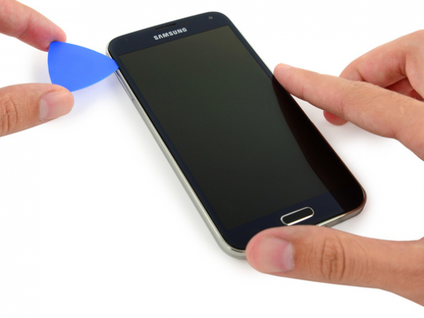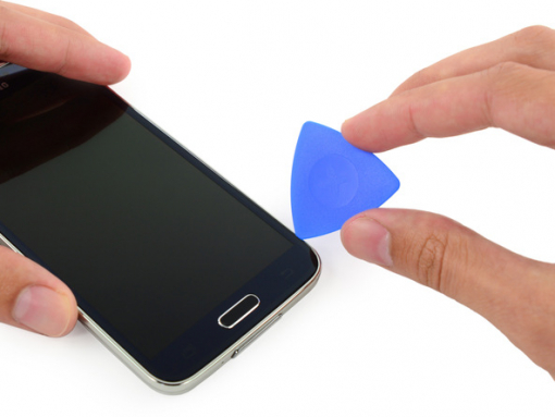Sie müssen das Plektrum drehen, um das Glas vom Telefon zu lösen.