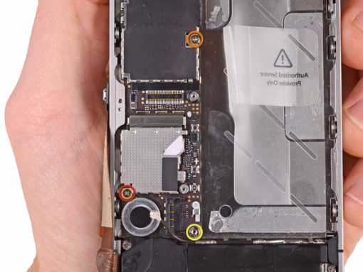 Entfernen Sie die 2.6 mm Kreutzschlitzschraube, die die Logikplatine in der Nähe der Ein/Aus-Taste befestigt.