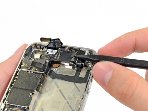 Heben Sie die kleine Erdungsklemme von der Hauptplatine und entfernen Sie sie aus dem iPhone.