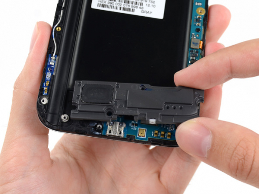 Nehmen Sie die Ecke der Schale neben der kleinen Öffnung zwischen die Finger und entfernen Sie die rückseitige Schale vom Telefon.