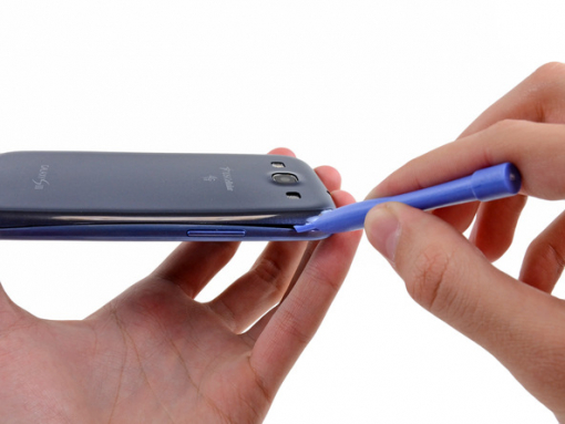 Die folgenden vier Schritte können ohne das Öffnungswerkzeug aus Kunststoff durchgeführt werden. Jedoch ist es empfehlenswert, das Universal Mobile Phone Opening Tool zu verwenden, um das Brechen der Clips am Rand der hinteren Schale zu vermeiden.