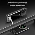 Mit der F15 Ultra Thin Portable Power Bank bleiben Sie überall mit Strom versorgt. Mit einer leistungsstarken 10000mAh Lithium-Polymer-Zelle bietet dieses schlanke Ladegerät schnelles 15W magnetisches, kabelloses Laden, das mit MagSafe-Geräten kompatibel ist, sowie zusätzliche Unterstützung für das Laden der Apple Watch. Sein ultraschlankes Gehäuse aus Aluminiumlegierung misst nur 13,5 mm und ist damit leicht und einfach zu tragen. Ein integrierter, klappbarer Ständer verwandelt es in eine praktische Desktop-Ladestation, während die digitale Anzeige Sie über die verbleibende Batterielebensdauer informiert. Der F15 eignet sich perfekt für Reisen, Arbeit und den täglichen Gebrauch und ist die ideale Mischung aus Tragbarkeit, Stil und intelligenter Ladeleistung.