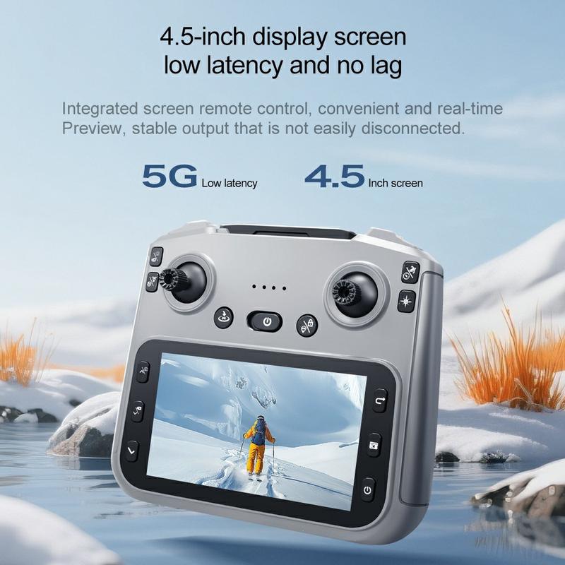 - Die 5G-WLAN-FPV-Übertragung ermöglicht die Bildanzeige in Echtzeit direkt auf dem integrierten 4,5-Zoll-Display der Fernsteuerung.