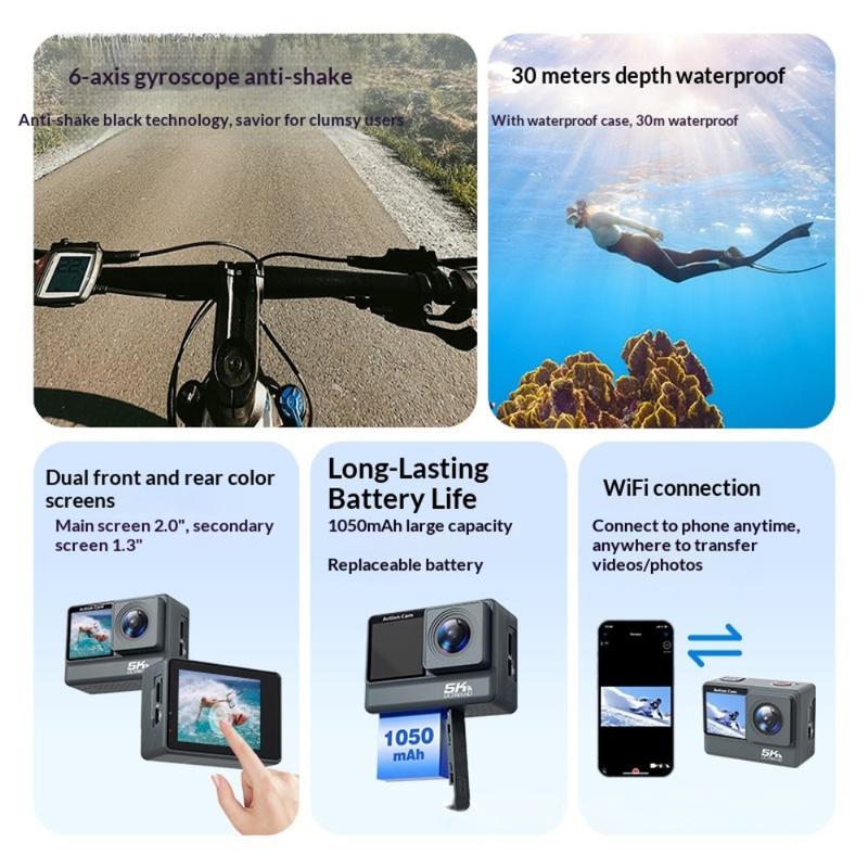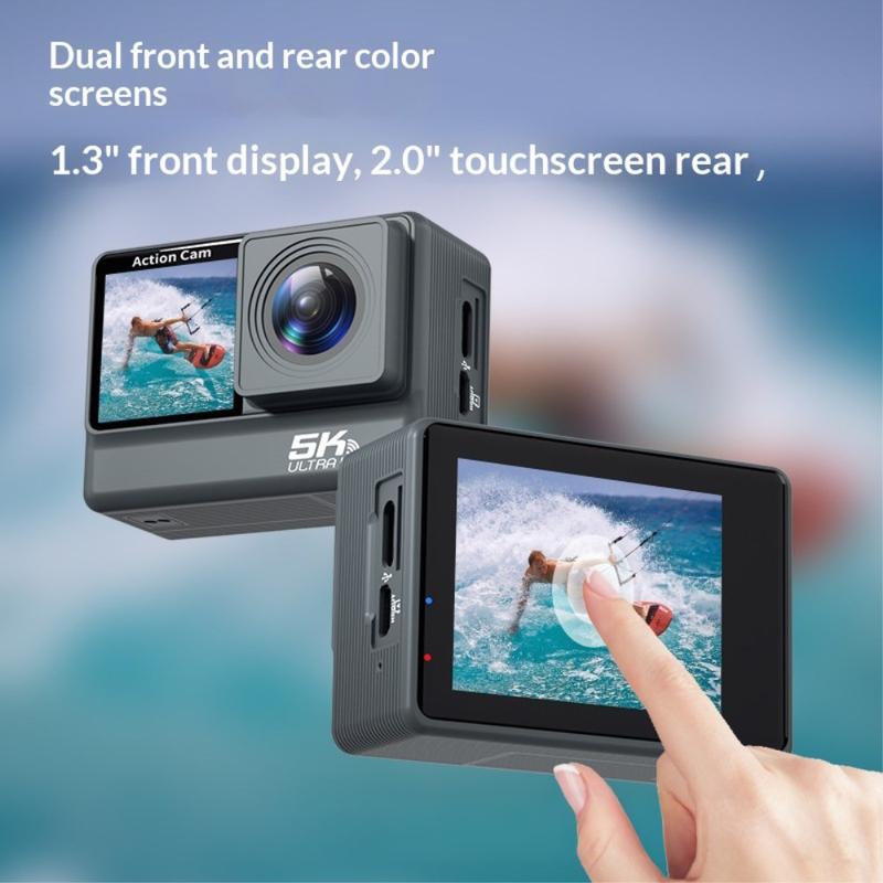 • F308AATR Dual-Screen-Actionkamera - 5K-HD-Sportkamera mit 6-Achsen-Stabilisierung, WLAN und wasserdichtem Gehäuse