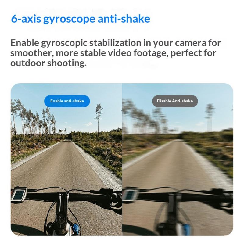 Die fortschrittliche 6-Achsen-Gyroskopstabilisierung sorgt für flüssige und ruhige Videos - selbst bei Hochgeschwindigkeitssportarten, beim Radfahren oder in unwegsamem Gelände -, sodass Ihre Aufnahmen ohne zusätzliche Ausrüstung professionell aussehen.
