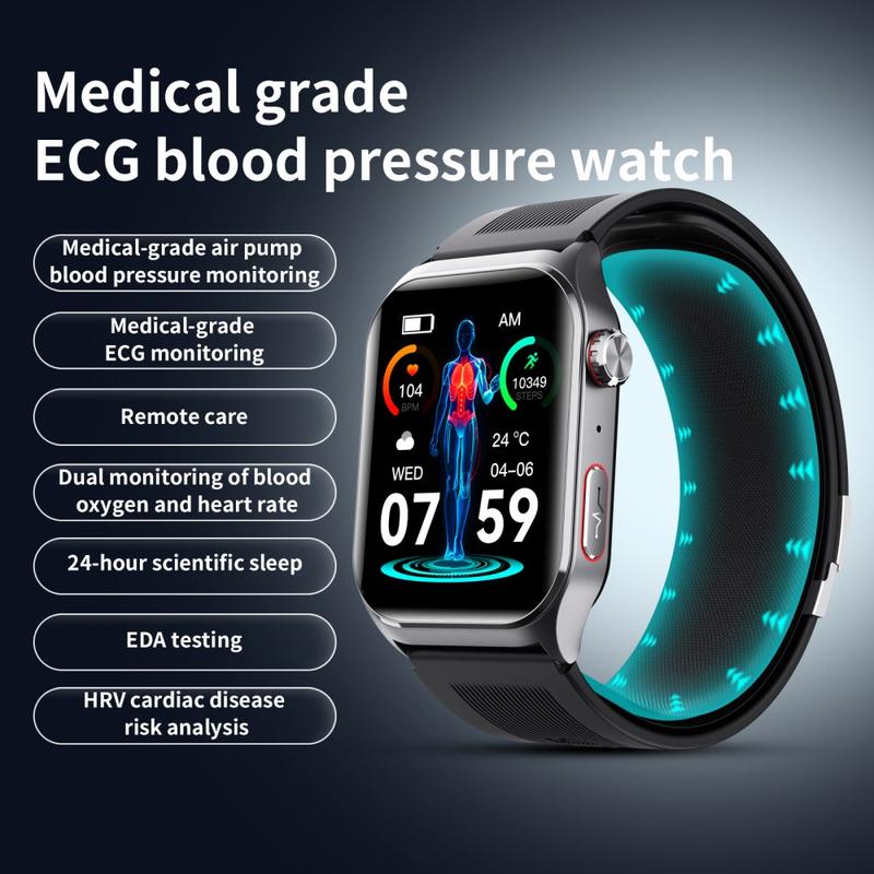 • F520 Advanced Smart Watch mit Luftpumpe Blutdruck, EKG, Herzfrequenz & Schlafüberwachung - 2,1" IPS Display, SOS Sturzalarm