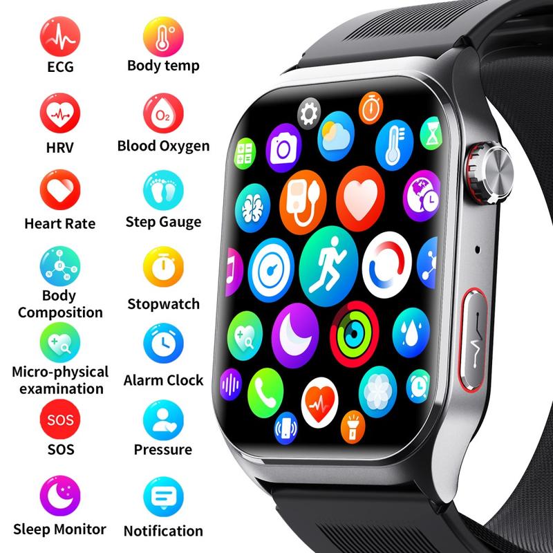 F520 Advanced Smart Watch mit Luftpumpe Blutdruck, EKG, Herzfrequenz & Schlafüberwachung - 2,1" IPS Display, SOS Sturzalarm