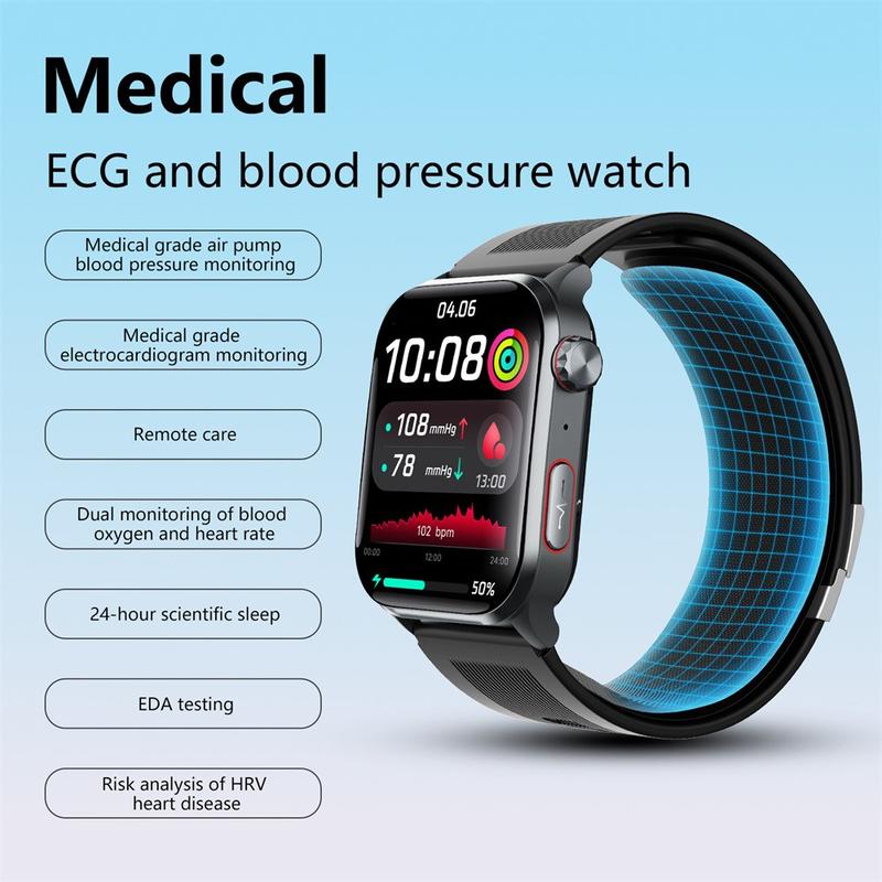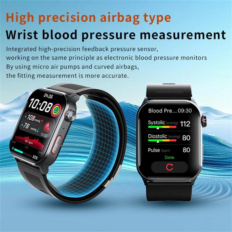 F530 Smart Watch mit Luftpumpe Blutdruck, EKG, Herzfrequenz & Schlafüberwachung - SOS-Sturzalarm, 2,1" IPS-Display