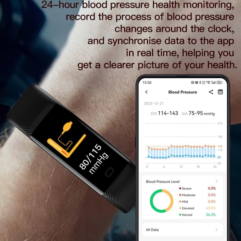 Das F71 Smart Bracelet bietet ein All-in-One-Gesundheitstracking mit Überwachung von Herzfrequenz, Blutsauerstoff (SpO₂), Blutdruck und Körpertemperatur. Perfekt, um den ganzen Tag über Ihr Wohlbefinden im Auge zu behalten.