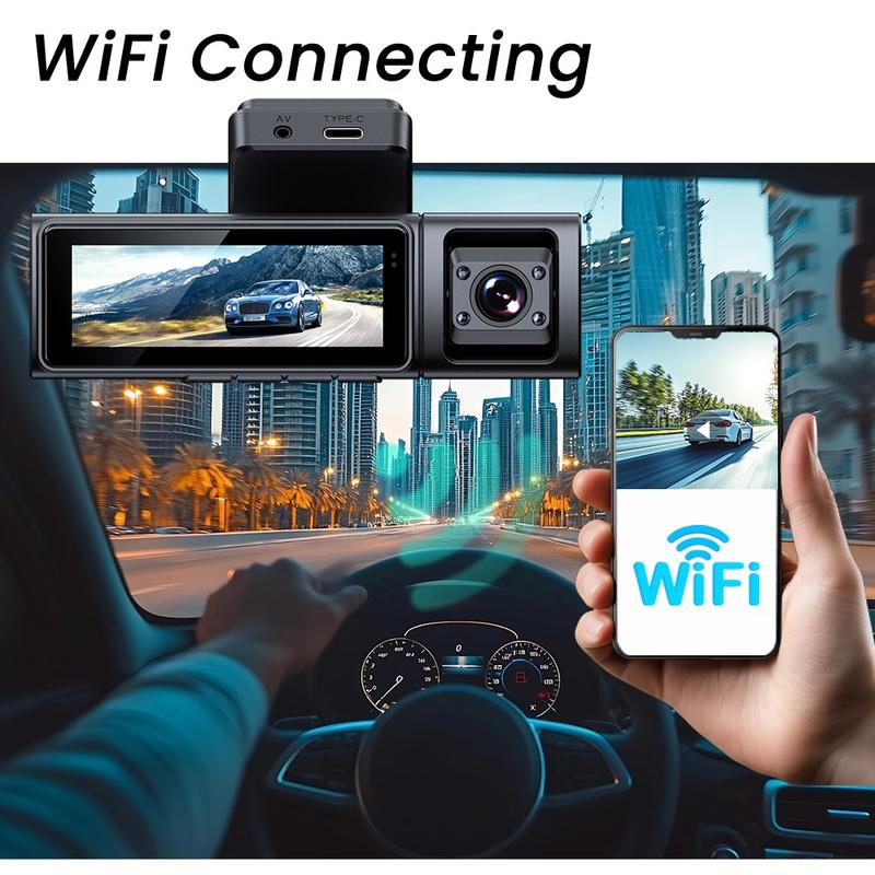• F9 3-Kanal-Dashcam mit GPS - 4K-Frontkamera, 1080P-Innenraum- und Rückfahrkamera, WiFi-App-Steuerung und Nachtsichtfunktion