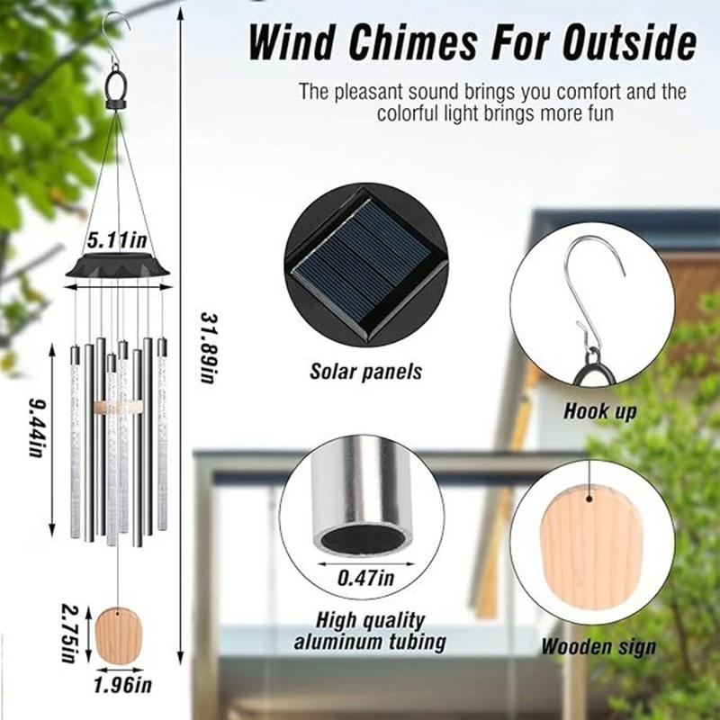 Solar Windspiel Licht - 7-Farben wechselnde LED hängende Garten Ornament, 96 cm, IP65 Wasserdicht