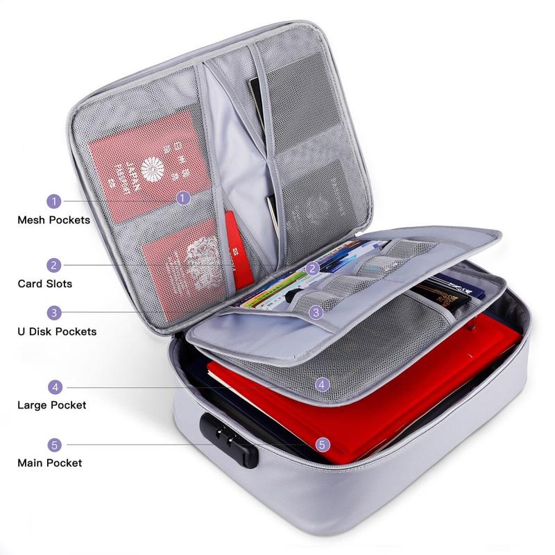 - Feuerfeste, wasserfeste Tasche mit sicherem Schloss