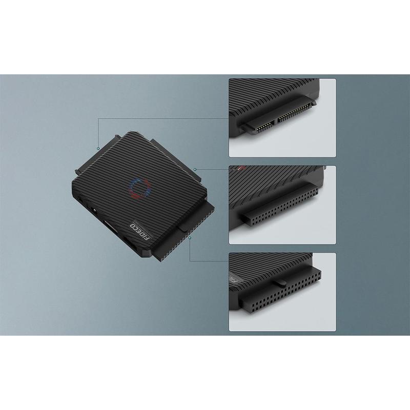 FIDECO PL03 Universaladapter - einfache Verwaltung der Daten von verschiedenen Laufwerken. Der FIDECO PL03 ist ein vielseitiger USB 3.0-zu-IDE/SATA-Adapter, an den Sie bis zu drei Festplatten gleichzeitig anschließen können. Sein kompaktes Design, die hohe Datenübertragungsgeschwindigkeit und die breite Kompatibilität machen ihn ideal für Profis und Heimanwender. Das Gerät ermöglicht eine schnelle und bequeme Übertragung von Dateien zwischen verschiedenen Geräten und erleichtert gleichzeitig die Archivierung und Verwaltung von Daten.