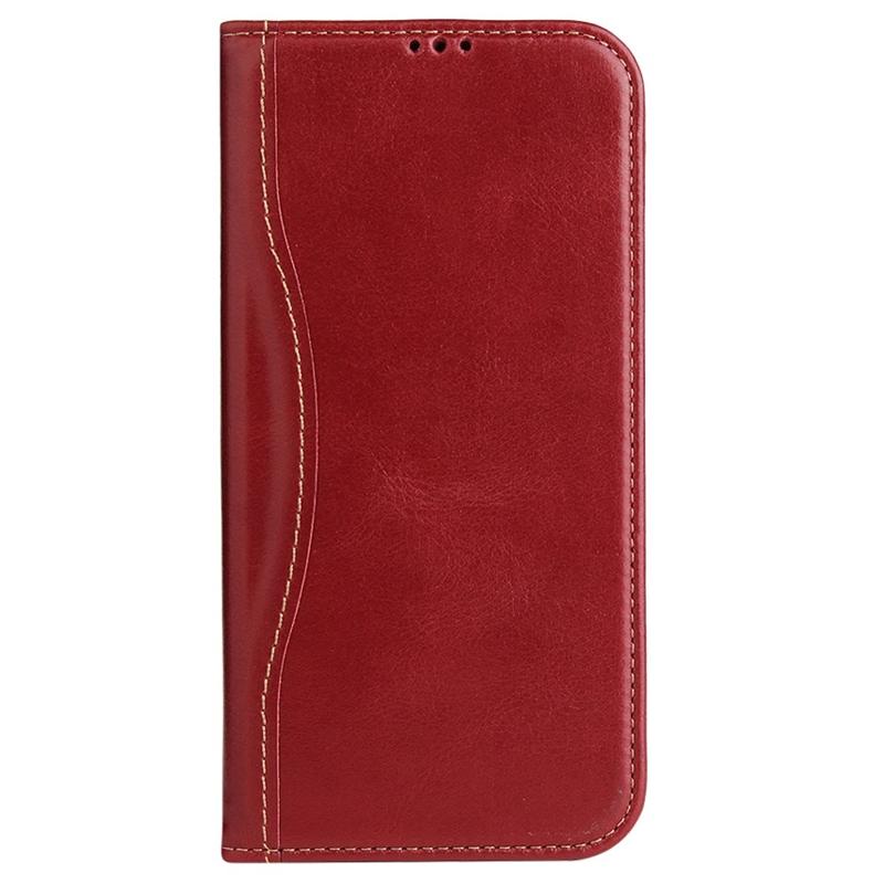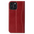 FIERRE SHANN Phone Case for iPhone 14 Pro, Top Layer Cowhide Leather Wallet Stand Shockproof Cell Phone Cover