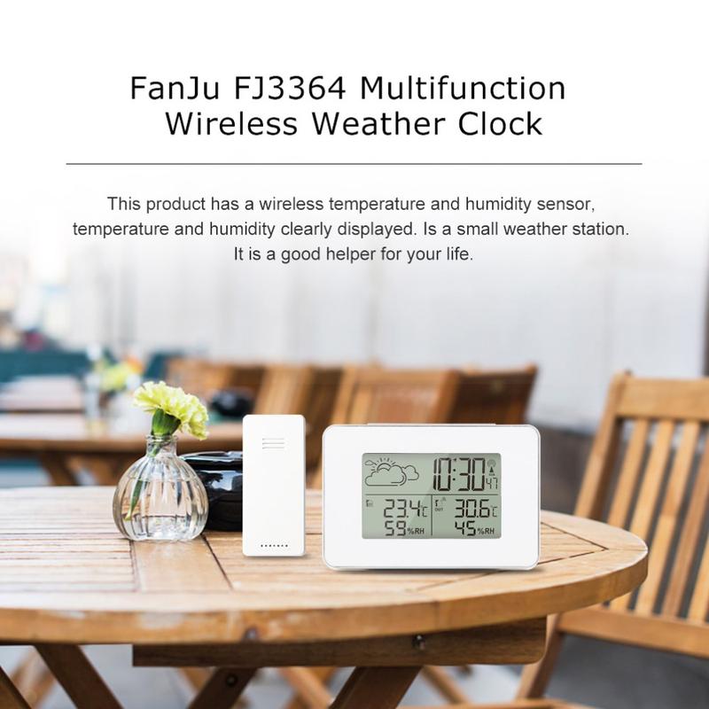 • FJ3364 Digitale Wetterstation mit Wecker, Funksensor, Hygrometer und Thermometer mit LCD-Display und Kalender