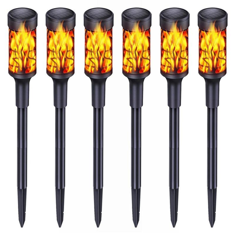 Flammeneffekt-Pfad-Solarleuchten - 6er-Pack, 63 cm flackernde Fackelpfähle mit Bewegungssensor, IP65 wasserdichte Garten- & Rasenlampen