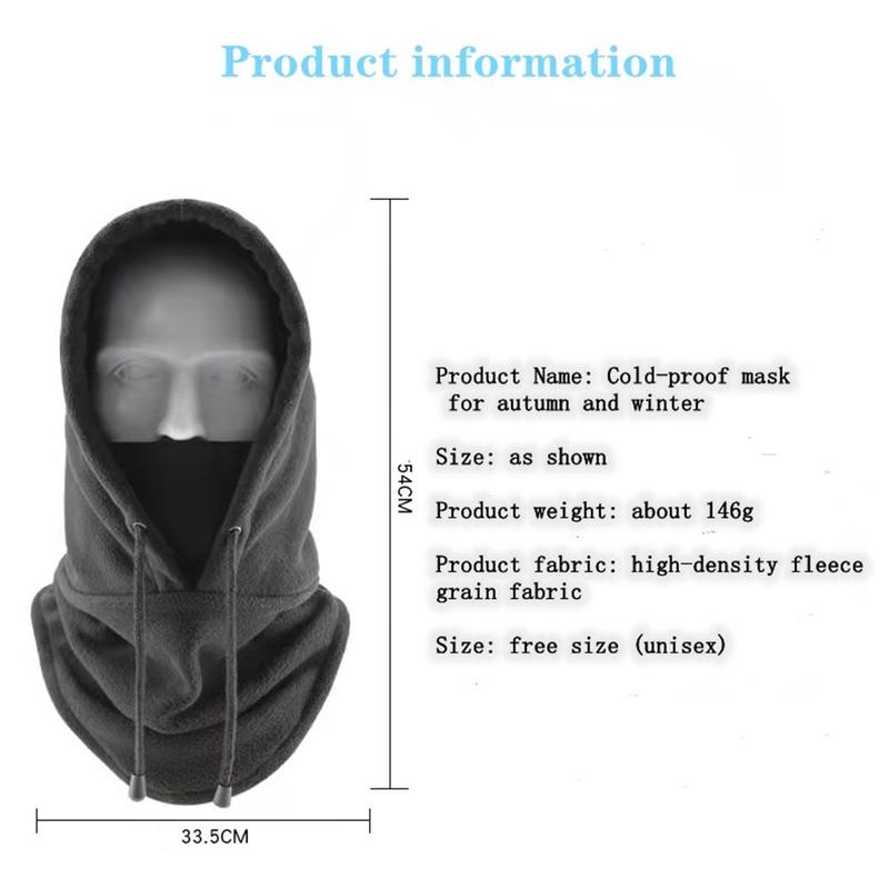 - Multifunktionales Design: Kann als Sturmhaube, Kapuze oder Halstuch getragen werden und lässt sich leicht an unterschiedliche Bedürfnisse anpassen.
