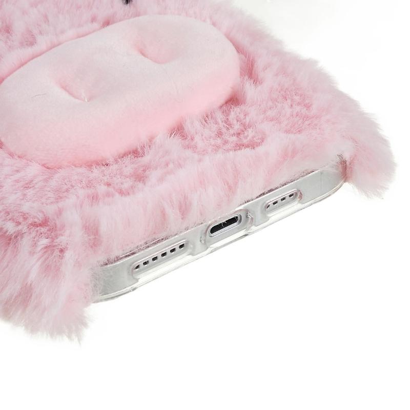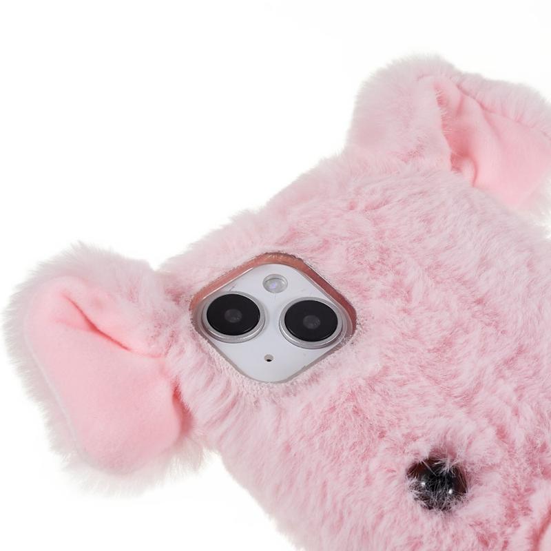 For iPhone 14 Plus Cute Cartoon Pig Design Soft Plush + TPU Protective Case Phone Drop-proof Cover