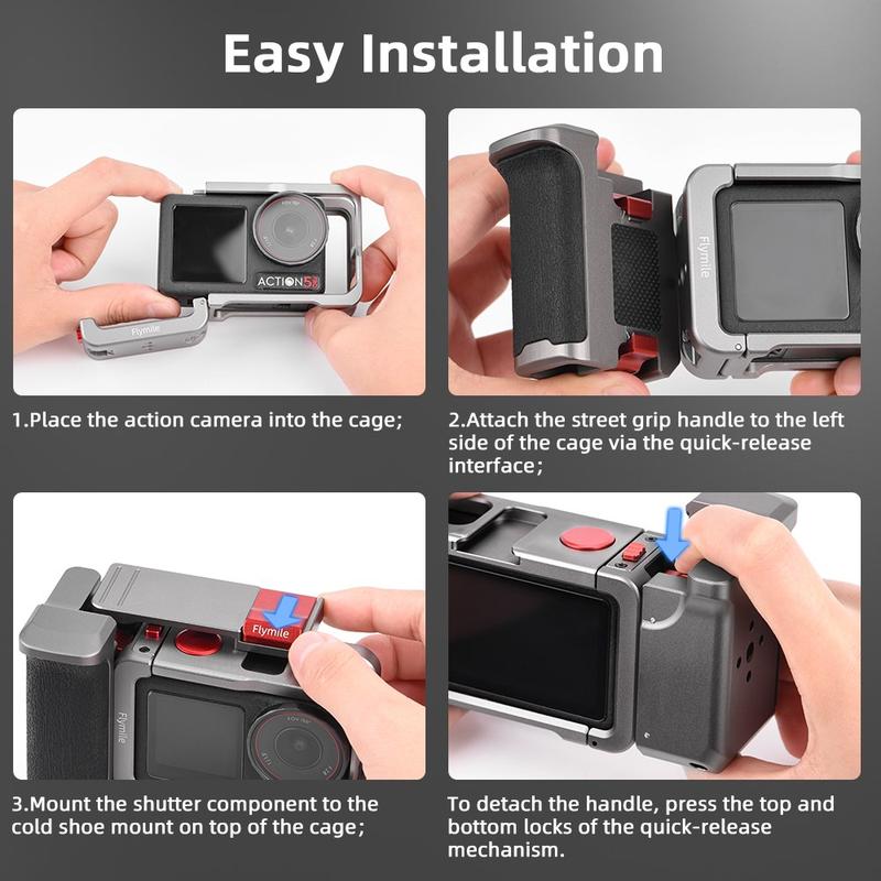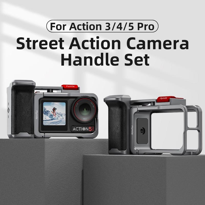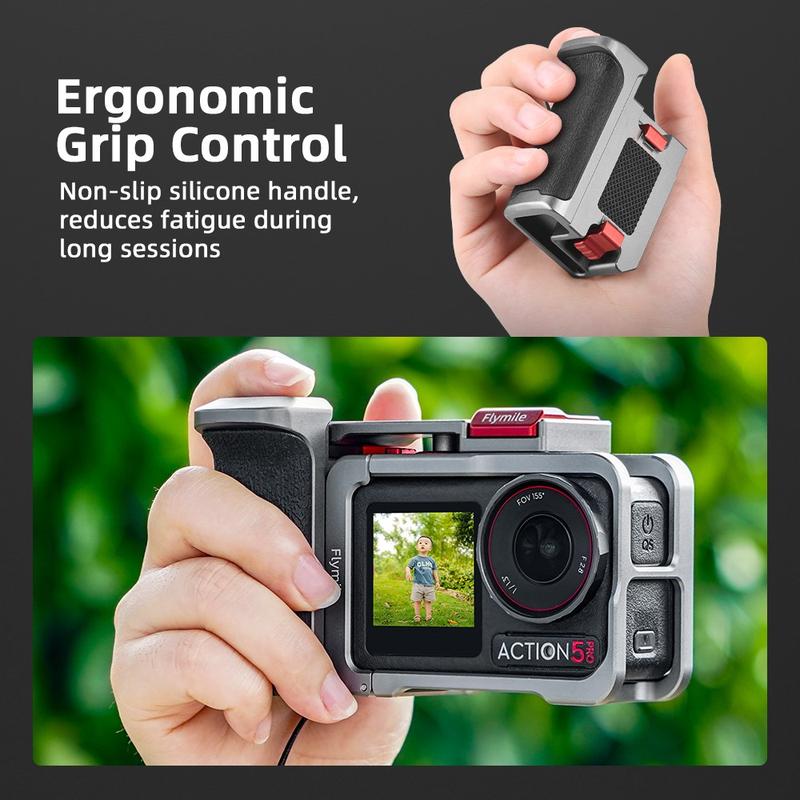 Flymile Actionkamera-Griff und Käfig-Set für DJI Osmo Action 5 Pro/4/3 - Auslösergriff mit Blitzschuh und Handgelenkband