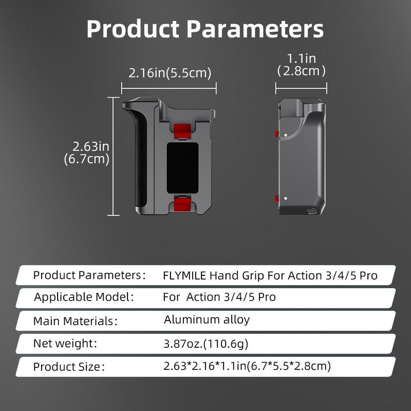 Das Flymile Griff- und Käfigset bietet zusätzlichen Schutz, Komfort und Zubehörausbau in einer kompakten Konfiguration - perfekt für Kreative, die ein stabileres, vielseitigeres DJI Osmo Action-Rig für Außenaufnahmen und Handaufnahmen suchen.