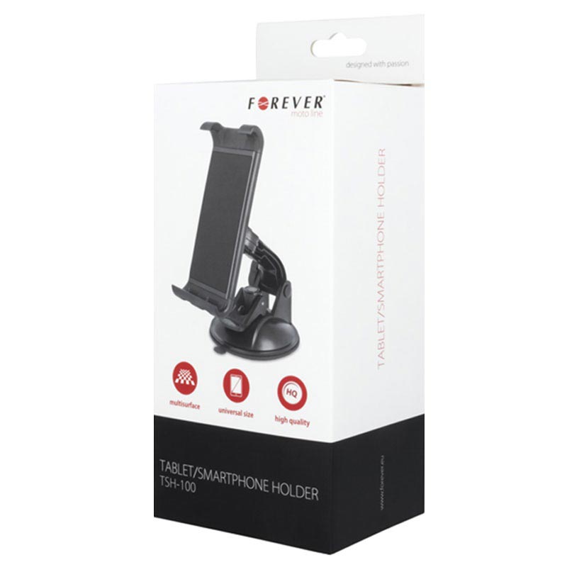 Speziell entworfen, um jedes Tablet, das 12.5cm bis 19.5cm breit oder jedes Smartphone, das 12.5cm bis 19,5cm hoch ist in vertikaler Position zu halten. Sie können den Forever TSH-100 als Autohalter sowie einen Tischhalter verwenden.