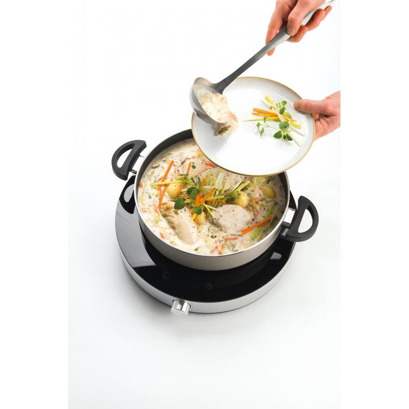 Fritel surprises with a free-standing XL induction cooking plate in black tempered crystal glass. Everyone has already experienced this problem: despite a large induction hob, there are not enough hot plates. The appliance is suitable for cooking, baking and roasting, using small or large pots and pans. In addition, the cooking plate can also keep your dishes warm for up to 3 hours.