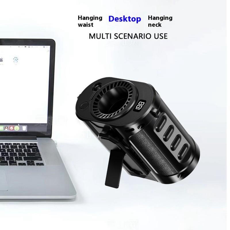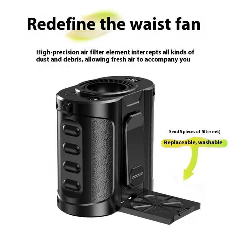 • G30 Tragbarer Hüftventilator - 8000 mAh, 5 Geschwindigkeitsstufen, Tischständer, LED-Leuchte, Powerbank-Funktion, 15000 U/min