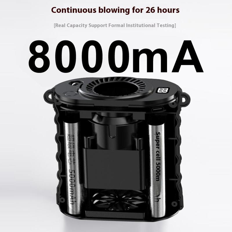 Der G30 ist für lange Tage ausgelegt und verfügt über einen wiederaufladbaren 8000-mAh-Akku. Über seinen USB-Ausgang kann er auch als Powerbank verwendet werden, sodass Sie Ihr Telefon bei Bedarf im Notfall aufladen können. Eine leistungsstarke LED-Taschenlampe sorgt für zusätzliche Praktikabilität bei Abendspaziergängen, beim Camping oder bei Stromausfällen und macht diesen Ventilator zu einem nützlichen Mehrzweckgerät für den Sommer und das Leben im Freien.