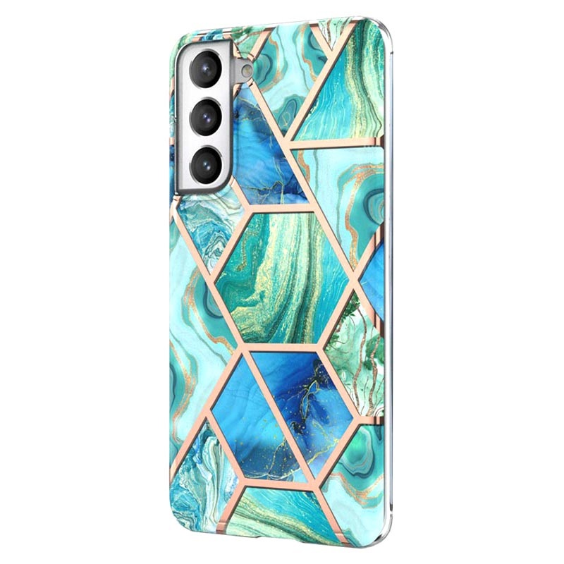 Galvanisierte IMD Samsung Galaxy S21 FE 5G TPU-Hülle mit Marmormuster - Grün