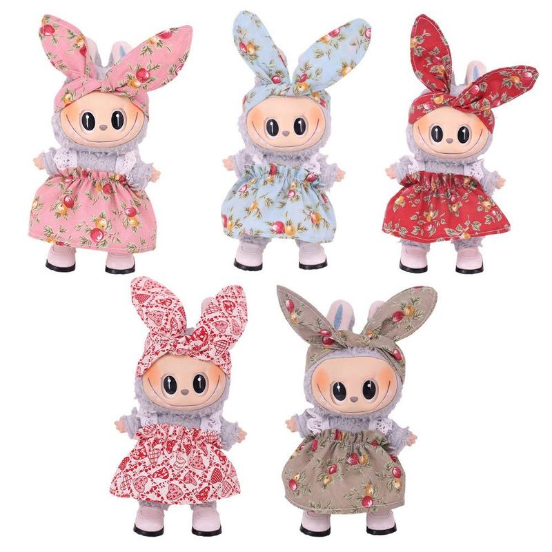 Garten-Party-Kleid & Stirnband Set für 17cm Labubu Mini-Figur - Maßgeschneidertes Party-Outfit, weicher Stoff, einfaches Design