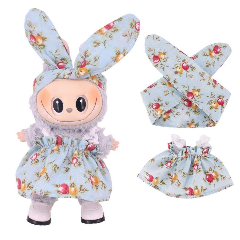 • Garten-Party-Kleid & Stirnband Set für 17cm Labubu Mini-Figur - Maßgeschneidertes Party-Outfit, weicher Stoff, einfaches Design