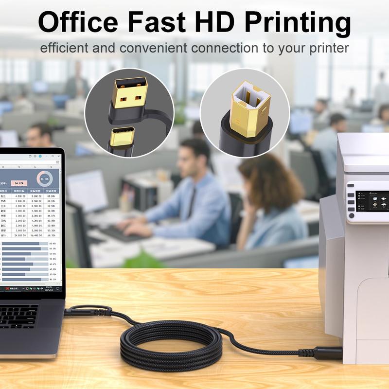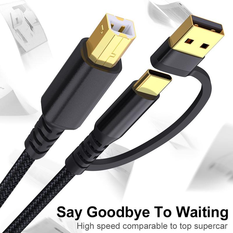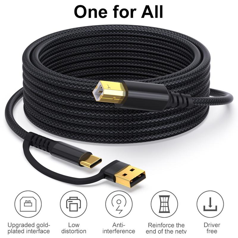 • Geflochtenes 2-in-1 USB-A / USB-C auf USB-B Druckerkabel - 5m