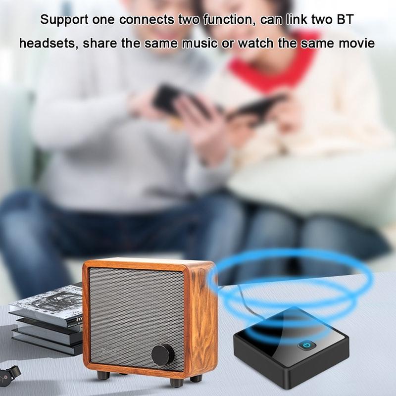 Mit der Funktion "Einer verbindet zwei" kann der Adapter mit zwei Bluetooth-Kopfhörern gleichzeitig gekoppelt werden - perfekt, um Musik, Filme oder TV-Audio gemeinsam zu hören, ohne andere zu stören.