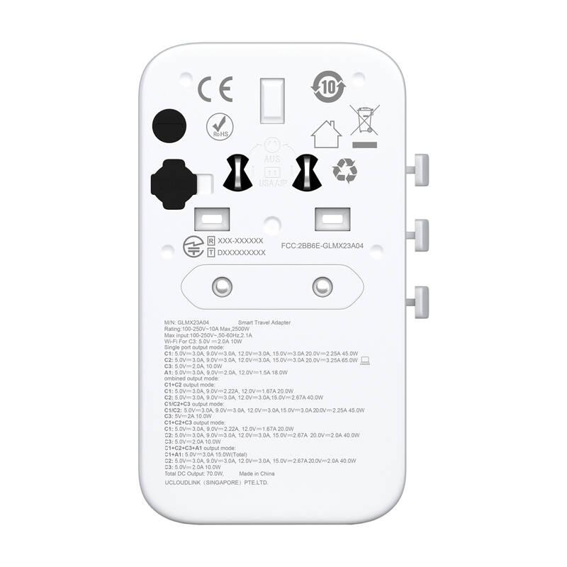GlocalMe RoamPlug Reiseadapter mit 4G/LTE Wi-Fi Hotspot - 70W - Weiß