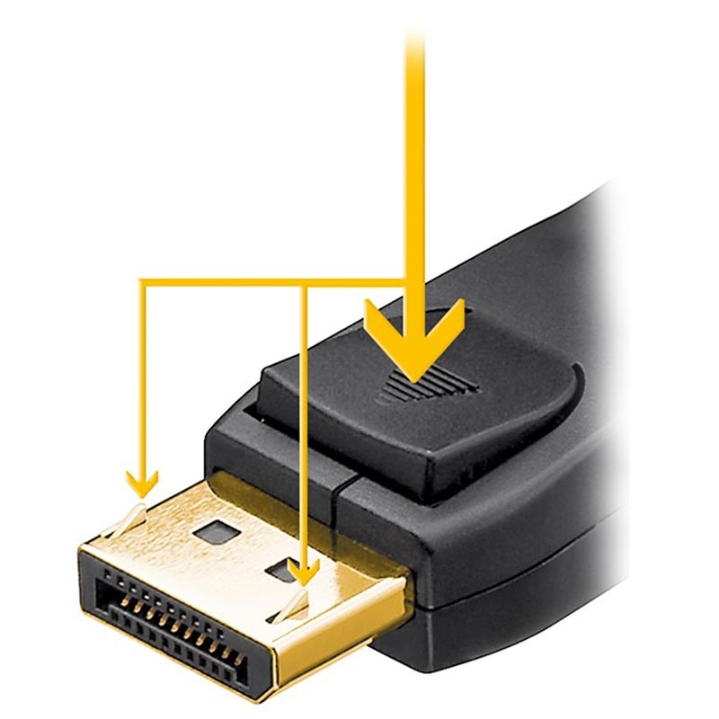 Dieses Anschlusskabel 1.4 hat einen Stecker mit einer Verriegelung für sicherere Verbindungen und Goldkontakte für eine verbesserte Signalübertragung.