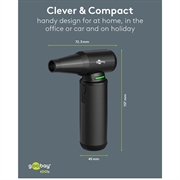 Der Goobay Air Duster Superior ist die ultimative Alternative zu Pressluftdosen. Mit einem atemberaubenden bürstenlosen Motor mit 130.000 Umdrehungen pro Minute und einer Leistung von 180 W liefert er eine unübertroffene Blaskraft zum Entfernen von Staub, Tierhaaren und Verschmutzungen von Tastaturen, PC-Gehäusen, Autoinnenräumen, Werkbänken und mehr. Dieser wiederaufladbare, kabellose und nachhaltig konzipierte Staubwedel bietet Spitzenleistung zu Hause, im Büro oder unterwegs.