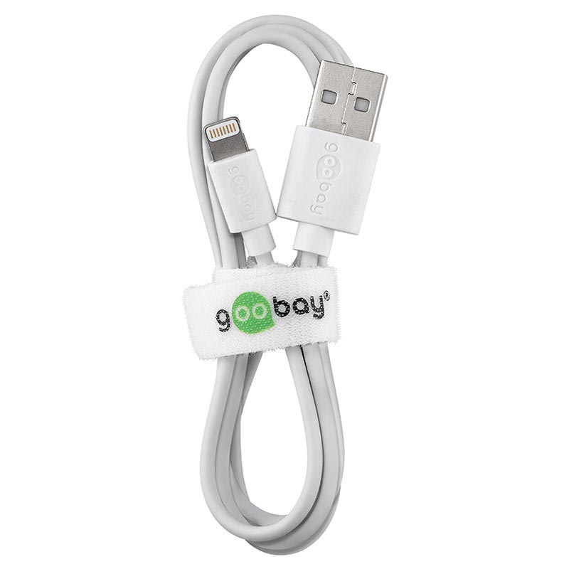 • Dieses High-Speed ​​USB 2.0 auf 8-Pin-Lightning Kabel von Goobay bietet Ihnen die Möglichkeit, gleichzeitig Daten auf Ihrem iPhone, iPad und iPod aufzuladen und zu synchronisieren. Der universelle USB-A-Anschluss ermöglicht einen einfachen Zugriff und eine mühelose Datensynchronisation zwischen Ihren Apple Geräten und Ihrem USB-unterstützten PC oder Laptop. Das Goobay Lightning Kabel ist auch Apple MFI zertifiziert, gute Qualität, Konnektivität und Zuverlässigkeit sind garantiert.