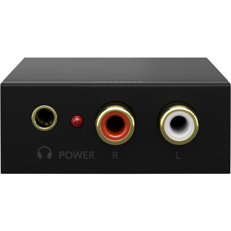 - Zwei analoge Ausgänge (RCA und 3,5 mm) ermöglichen die gemeinsame Nutzung eines DAC durch zwei Geräte.