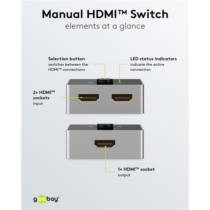 Manuell HDMI™-omkopplare 2 till 1 (4K @ 60 Hz)